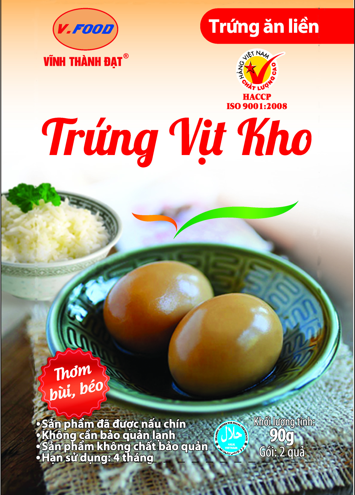 Thành phần: Trứng gà 97%, đường, muối, chất điều vị (E621), gia vị ( thảo quả, tai vị, cây quế) Bảo quản: Nhiệt độ thường, nơi khô ráo, thoáng mát