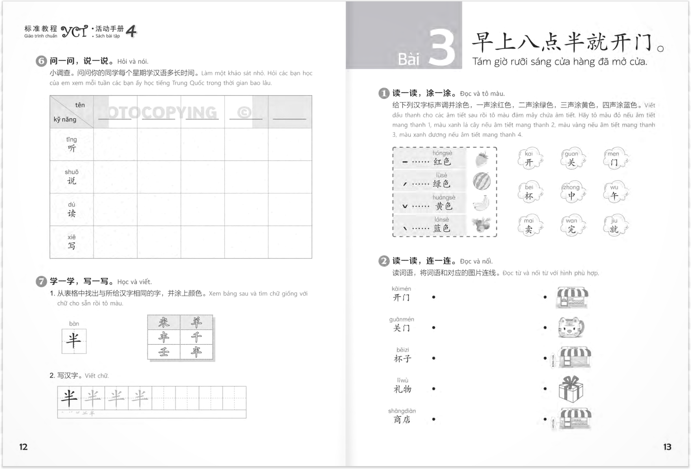 Giáo Trình Hán Ngữ Boya - Sơ Cấp Tập 2 (Sách Bài Tập Kèm Đáp Án) Cuốn sách tiếng Trung thuộc trình độ sơ cấp giúp người học tăng vốn từ vựng và ngữ pháp một cách nhanh chóng Ở Việt Nam hiện nay, tiếng Trung là một trong bốn ngoại ngữ phổ biến nhất. Số lượng người học tiếng Trung tăng qua từng ngày, bởi đây là môn ngoại ngữ giúp người học mở ra nhiều cơ hội cả trong học tập lẫn công việc. Bạn đang là học sinh, sinh viên muốn học thêm tiếng Trung để nâng cao tầm hiểu biết cũng như phục vụ cho học tập Bạn muốn nhập hàng từ Trung Quốc để kinh doanh nhưng lại không biết tiếng Trung nên mất rất nhiều chi phí cho trung gian Bạn muốn học tiếng Trung để phục vụ cho công việc Vấn đề của các bạn là: Bạn là người mới bắt đầu học tiếng Trung, bạn không biết nên tự học, tự ôn luyện ở nhà như thế nào? Ngữ pháp và Vốn từ vựng của bạn bị hạn chế, làm sao để nâng cao cả 2 yếu tố này? Kỹ năng đọc và viết rất quan trọng và cần được cải thiện nhưng đây lại là 2 kỹ năng khó và các bạn chưa biết nên cải thiện 2 kỹ năng này như thế nào? Nếu câu trả lời của bạn cho 3 vấn đề trên vẫn là KHÔNG hoặc CHƯA thì bộ giáo trình Hán ngữ Boya sơ cấp chính là giải pháp tốt nhất dành cho các bạn. Thông qua tập 1 các bạn đã được 30 bài đầu của trình độ sơ cấp. Tập 2 sẽ cung cấp cho các bạn 25 bài còn lại của trình độ này. Vì sao cuốn giáo trình tiếng Trung này có thể giải quyết hết những vấn đề của bạn? Trình bày khoa học, chi tiết phù hợp cho việc tự học, tự ôn tập sau những giờ học trên lớp Mỗi bài học chia ra các đơn nguyên. Mỗi đơn nguyên bao gồm các bài. Trước đơn nguyên có phần luyện, sau đơn nguyên là bài tập. Hoạt động luyện tập đơn nguyên có hình thức đa dạng, mục đích là giúp học sinh nhớ lại tri thức ngôn ngữ đã có hoặc chuẩn bị cho việc học đơn nguyên mới. Bài tập của các chủ đề gồm nhiều tầng kiến thức, từ kết cấu âm tiết chữ Hán, ngữ tố, từ hội cho đến các bài văn, giúp học sinh củng cố, hấp thu và vận dụng kết cấu ngôn ngữ của chủ đề. Phần cuối mỗi chủ đề đều có bài đọc và viết bài tập. Bài đọc tái hiện từ hội và điểm ngôn ngữ trong mỗi chủ đề. Chủ yếu là luyện tập năng lực viết bài cho học sinh, ngoài ra còn luyện cho học sinh kỹ năng ứng dụng kết cấu ngôn ngữ trong mỗi chủ đề. Với cách trình bày này các bạn hoàn toàn có thể tự học, tự ôn luyện sau những giờ lên lớp mà vẫn hiệu quả. Luyện tập nhiều cấu trúc ngữ pháp và từ vựng từ đó tăng khả năng đọc, viết của người học Trọng tâm của cuốn sách là công năng huấn luyện ngôn ngữ và tuyển chọn ngữ liệu tự nhiên xoay quanh sự hứng thú của người học. Từng bài học các bạn sẽ được ôn luyện từ vựng cùng các ngữ pháp trọng điểm. Qua phần lý thuyết các bạn sẽ được làm các bài tập liên quan tới phần lý thuyết vừa học nhằm củng cố và nâng cao kiến thức nhanh chóng. Mỗi bài học các bạn sẽ được hệ thống lại khoảng 20 từ vựng với phiên âm pinyin giúp các bạn có thể đọc được chữ Hán. Qua cách trình bày này các bạn sẽ tăng được khả năng đọc cũng như khả năng sử dụng văn phong linh hoạt. Cung cấp các bài tập luyện viết bám sát từng bài học Phần luyện viết giúp các bạn luyện tập các từ vựng theo từng bài học với nhiều dạng bài tập. Người học sẽ được làm các dạng bài như: Viết phiên âm từ vựng, điền từ vào chỗ trống, viết đoạn văn, luyện viết theo mẫu,… Hệ thống các bài tập này chính là nguồn tài liệu để các bạn ôn luyện cho các bài kiểm tra, bài thi. Phần luyện viết có sẵn các nét mờ, những chữ đầu bạn có thể tô lại để quen nét chữ và thứ tự các nét, từ đó tạo thói quen để tự viết những chữ sau.