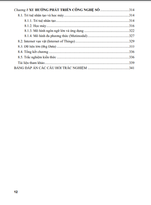 Chương 8: Xu hướng phát triển công nghệ số, chương cuối của cuốn sách phân tích các xu hướng công nghệ số mới, chủ yếu là trí tuệ nhân tạo cũng như một số ứng dụng công nghệ như ChatGPT. Chương này cũng giới thiệu về Internet vạn vật (IoT), dữ liệu lớn (Bigdata) và những tiến bộ gần đây trong các lĩnh vực này.