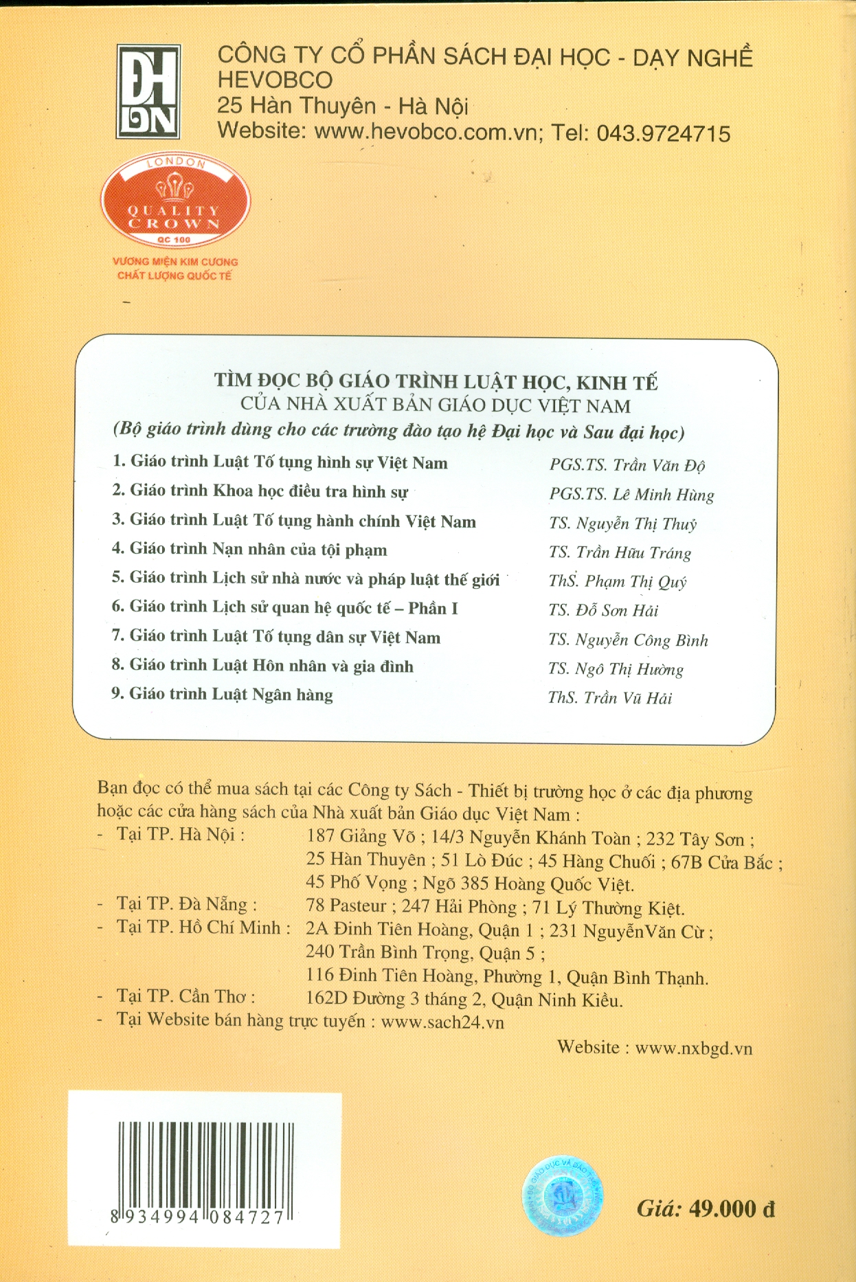Nhà phát hành: Công ty TNHH Thương mại và Dịch vụ Văn hóa Hà Nội Tác giả: PGS.TS. NGÔ HUY CƯƠNG - TS. NGUYỄN THỊ PHƯƠNG CHÂM - TS. TRẦN KIÊN TS. ĐỖ GIANG NAM
