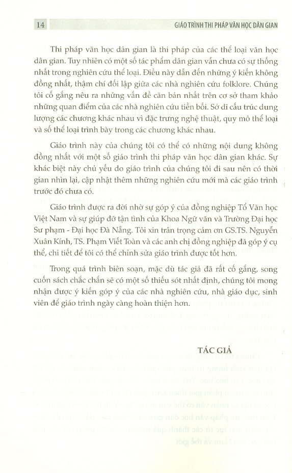 Giáo trình này của chúng tôi có thể có những nội dung không đồng nhất với một số giáo trình thi pháp văn học dân gian khác. Sự khác biệt này chủ yếu do giáo trình của chúng tôi đi sau nên có thời gian nhìn lại, cập nhật thêm những nghiên cứu mới mà các giáo trình trước đó chưa có.