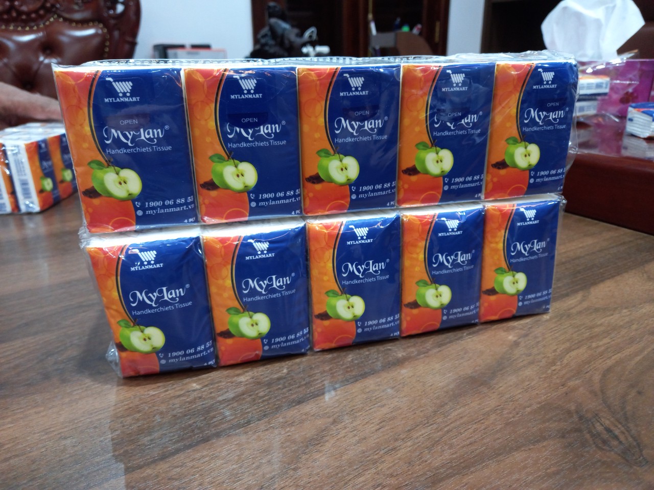 KHĂN GIẤY BỎ TÚI MYLAN TÁO là sản phẩm cao cấp của công ty giấy Mylan luôn nói không với hóa chất OBA, không tái chế, không tẩy trắng chính là chân ái, ""VẬT BẤT LY THÂN"" dành cho mọi người mỗi khi ra ngoài, giúp đánh bay mọi khó chịu khi bị dị ứng thời tiết, viêm xoang và cả những vết bụi bẩn bám trên da.