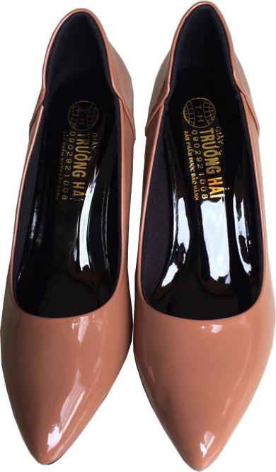 ✨Giày cao gót 7cm Trường Hải gót to da bóng màu nâu thời trang cao cấp CG0411 [ HÌNH ẢNH THẬT ]