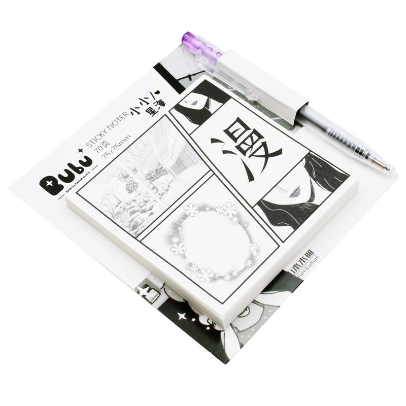 ✨Giấy Note Hình Kèm Bút 75 x 75 mm - Bu Bu BLTP-0341 - Mẫu 1 (70 Tờ)