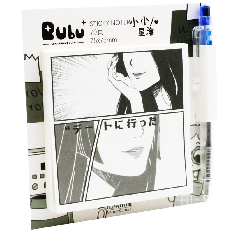✨Giấy Note Hình Kèm Bút 75 x 75 mm - Bu Bu BLTP-0341 - Mẫu 2 (70 Tờ)