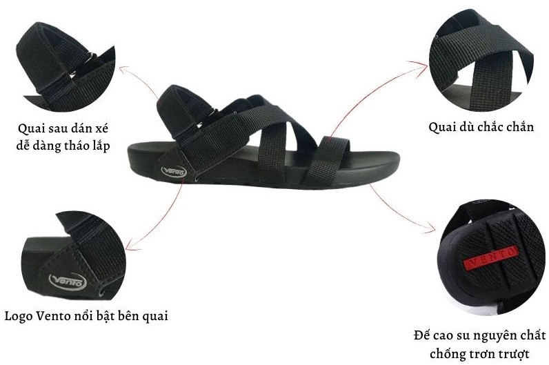 - Giày dép Sandal Vento được sản xuất trên thiết bị và kỹ thuật công nghệ cao của Nhật. Chất liệu sản phẩm cao cấp không gây hôi chân. Giày dép Sandal Vento được thiết