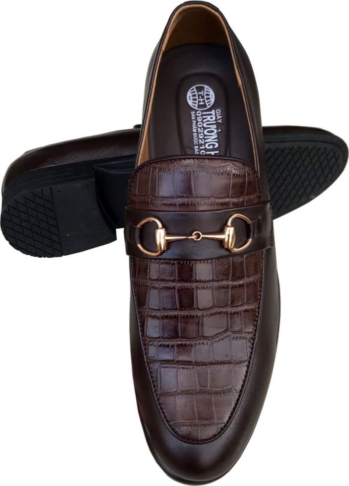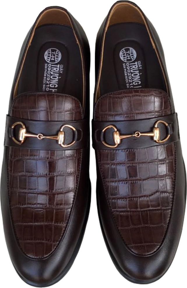 ✨Giày tây nam Trường Hải da bò dập vân cá sấu màu nâu cao cấp đế cao 4cm GT210