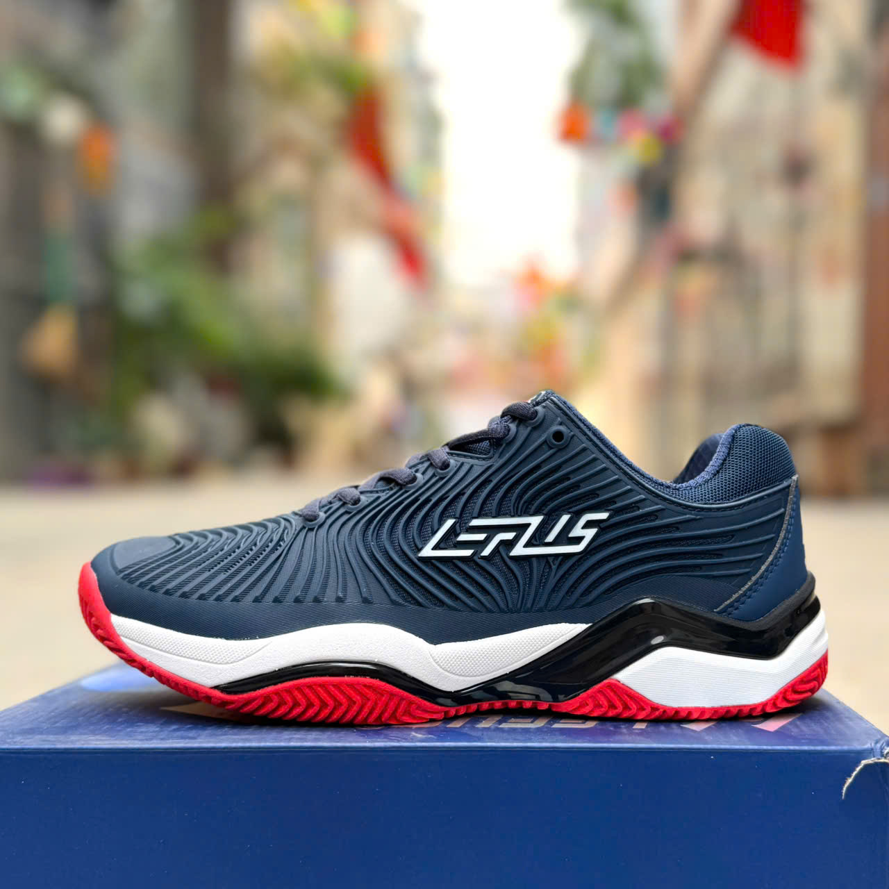 Thông tin chi tiết giày Pickleball Lefus L031 • Màu sắc: Đen Đỏ/ Xanh Cam/ Trắng Xanh • Thân giày/ Upper: Da PU, vải Mesh. • Đế giữa/ Midsole: EVA đàn hồi cao, TPU chống