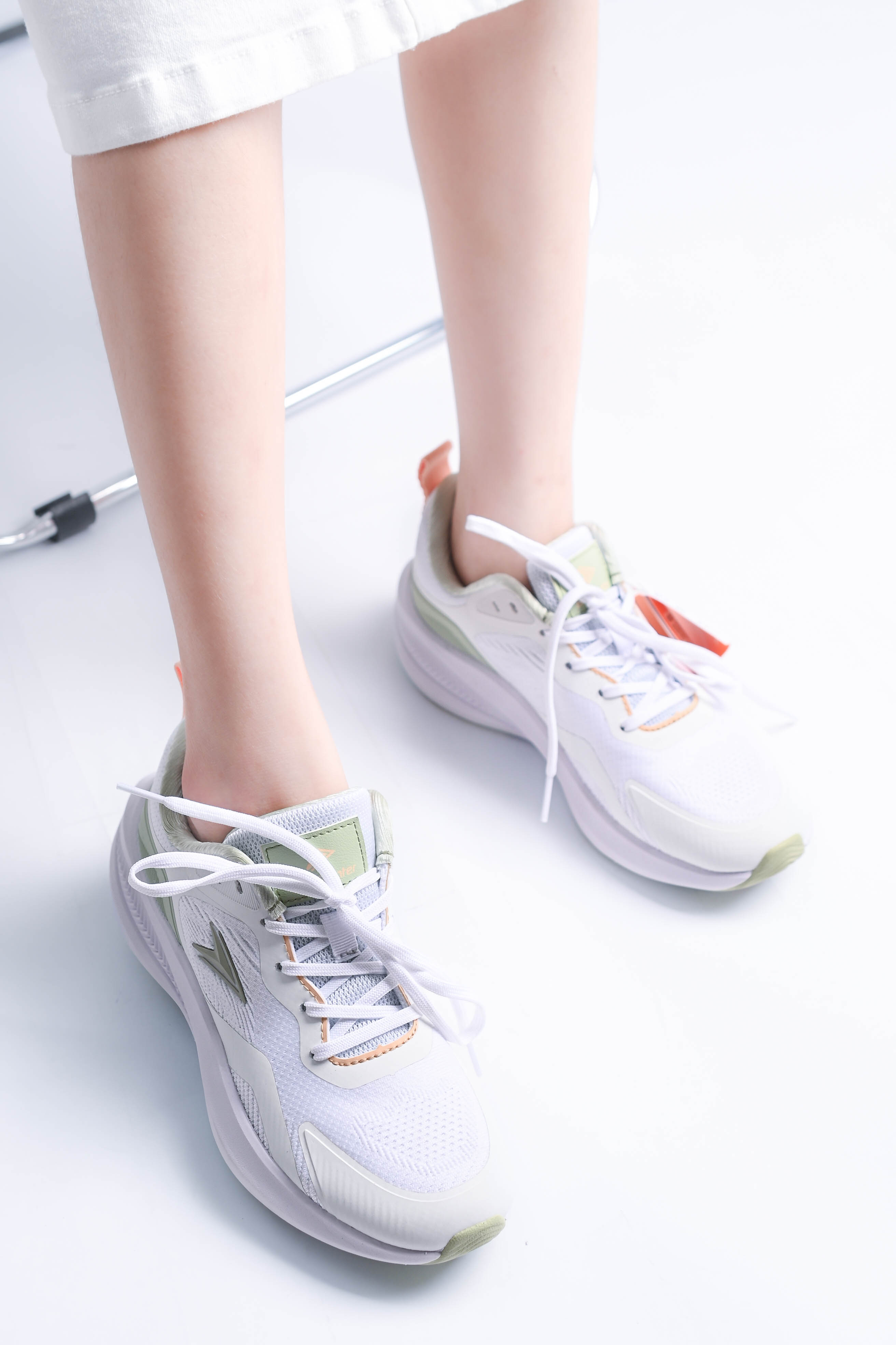 Đế giày - lựa chọn chất liệu Phylon làm nên đế giày thể thao cho các chị em. Vì tính chất nổi bật của vật liệu này là trọng lượng siêu nhẹ (nặng chỉ 300g/chiếc) và độ đàn hồi cao. Nhờ đó, phần lớn khách hàng sử dụng sản phẩm ngay từ lần đầu tiên đều có cảm giác đôi chân “nhẹ như bay”, bước đi thoải mái và thỏa thích vận động ở mọi tư thế theo cách riêng mà không lo đau mỏi chân. - Mặt đế thiết kế thêm những rãnh chống trượt, bố trí dày đặc nhằm tăng độ ma sát. Qua đó giúp người mang vận động thoải mái, bước đi vững chắc và bảo đảm an toàn tối đa, nhất là khi di chuyển trên những địa hình trơn nhẵn hoặc thời tiết ẩm ướt. Thân giày - Thân giày áp dụng công nghệ đan 2 sợi độc đáo. Nhờ vậy, sản phẩm vô cùng nhẹ và thoáng, mang lại cảm giác thoải mái nhất có thể cho người sử dụng. Không những vậy, công nghệ đan 2 sợi còn bảo đảm độ bền chặt của từng chi tiết như cổ giày, quai giày, dây giày… giữ đúng form dáng lâu dài, ít biến dạng hoặc giãn sau một thời gian sử dụng. - Bên cạnh đó, thiết kế thân giày được cải tiến mạnh mẽ bằng chất liệu vải canva, bảo đảm cảm giác thoải mái nhất có thể và hạn chế nóng bức, bí bách nếu phải mang giày trong thời gian dài. -