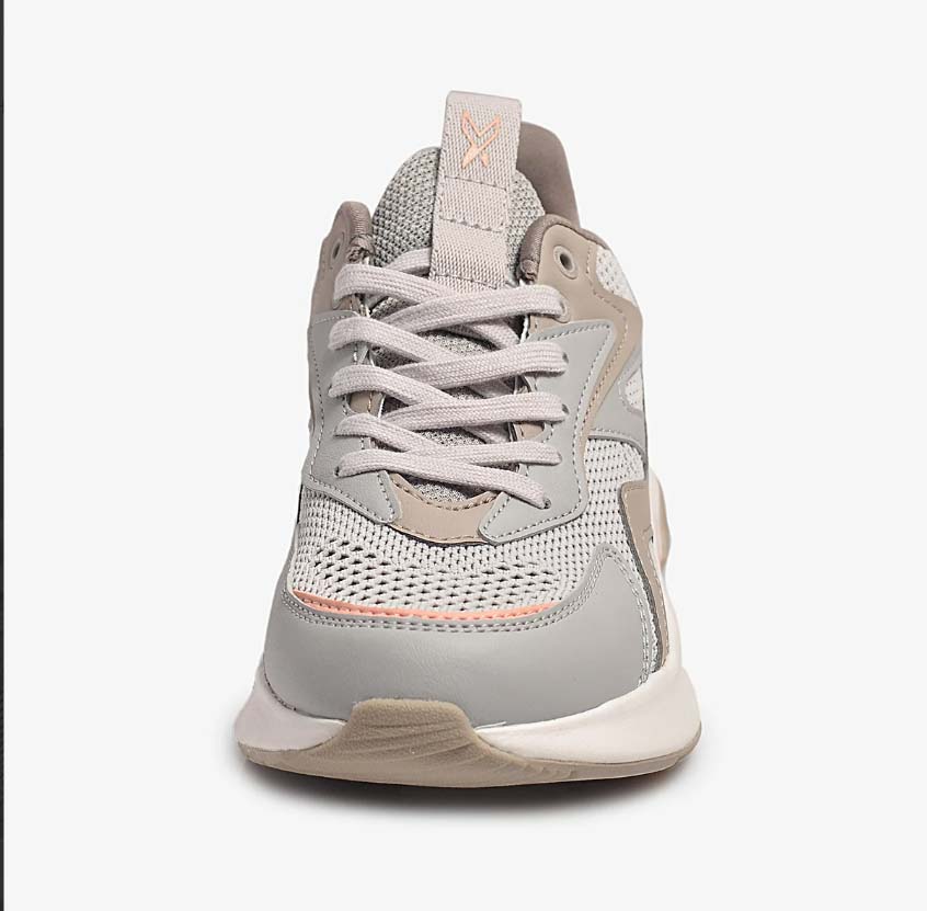 Đế giày - lựa chọn chất liệu Phylon làm nên đế giày thể thao cho các chị em. Vì tính chất nổi bật của vật liệu này là trọng lượng siêu nhẹ (nặng chỉ 300g/chiếc) và độ đàn hồi cao. Nhờ đó, phần lớn khách hàng sử dụng sản phẩm ngay từ lần đầu tiên đều có cảm giác đôi chân “nhẹ như bay”, bước đi thoải mái và thỏa thích vận động ở mọi tư thế theo cách riêng mà không lo đau mỏi chân. - Mặt đế thiết kế thêm những rãnh chống trượt, bố trí dày đặc nhằm tăng độ ma sát. Qua đó giúp người mang vận động thoải mái, bước đi vững chắc và bảo đảm an toàn tối đa, nhất là khi di chuyển trên những địa hình trơn nhẵn hoặc thời tiết ẩm ướt. Thân giày - Thân giày áp dụng công nghệ đan 2 sợi độc đáo. Nhờ vậy, sản phẩm vô cùng nhẹ và thoáng, mang lại cảm giác thoải mái nhất có thể cho người sử dụng. Không những vậy, công nghệ đan 2 sợi còn bảo đảm độ bền chặt của từng chi tiết như cổ giày, quai giày, dây giày… giữ đúng form dáng lâu dài, ít biến dạng hoặc giãn sau một thời gian sử dụng. - Bên cạnh đó, thiết kế thân giày được cải tiến mạnh mẽ bằng chất liệu vải canva, bảo đảm cảm giác thoải mái nhất có thể và hạn chế nóng bức, bí bách nếu phải mang giày trong thời gian dài. -