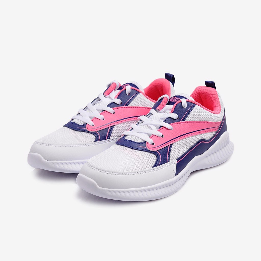 Đế giày - lựa chọn chất liệu Phylon làm nên đế giày thể thao cho các chị em. Vì tính chất nổi bật của vật liệu này là trọng lượng siêu nhẹ (nặng chỉ 300g/chiếc) và độ đàn hồi cao. Nhờ đó, phần lớn khách hàng sử dụng sản phẩm ngay từ lần đầu tiên đều có cảm giác đôi chân “nhẹ như bay”, bước đi thoải mái và thỏa thích vận động ở mọi tư thế theo cách riêng mà không lo đau mỏi chân. - Mặt đế thiết kế thêm những rãnh chống trượt, bố trí dày đặc nhằm tăng độ ma sát. Qua đó giúp người mang vận động thoải mái, bước đi vững chắc và bảo đảm an toàn tối đa, nhất là khi di chuyển trên những địa hình trơn nhẵn hoặc thời tiết ẩm ướt. Thân giày - Thân giày áp dụng công nghệ đan 2 sợi độc đáo. Nhờ vậy, sản phẩm vô cùng nhẹ và thoáng, mang lại cảm giác thoải mái nhất có thể cho người sử dụng. Không những vậy, công nghệ đan 2 sợi còn bảo đảm độ bền chặt của từng chi tiết như cổ giày, quai giày, dây giày… giữ đúng form dáng lâu dài, ít biến dạng hoặc giãn sau một thời gian sử dụng. - Bên cạnh đó, thiết kế thân giày được cải tiến mạnh mẽ bằng chất liệu vải canva, bảo đảm cảm giác thoải mái nhất có thể và hạn chế nóng bức, bí bách nếu phải mang giày trong thời gian dài. -