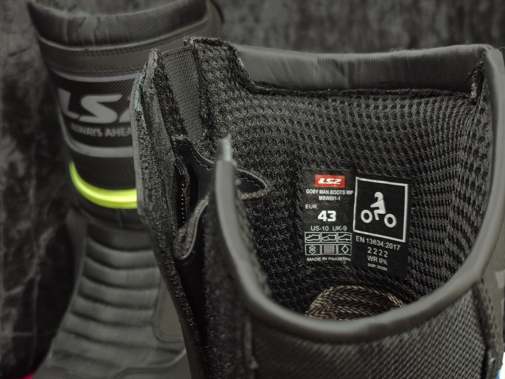 Giày LS2 Goby Man được đánh giá cao về độ an toàn, được chứng nhận đạt tiêu chuẩn an toàn của Liên minh châu Âu (CE): EN 13634: 2017, Level 2|2|2|2 WR rating.