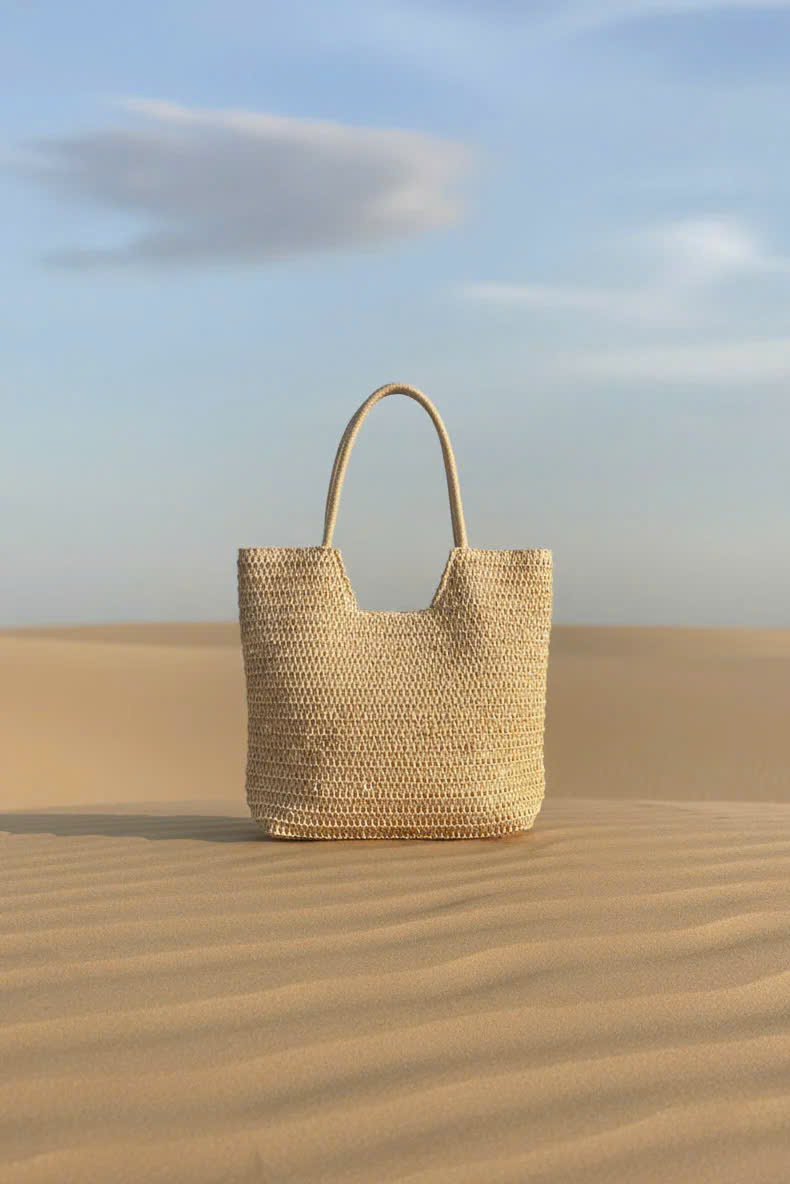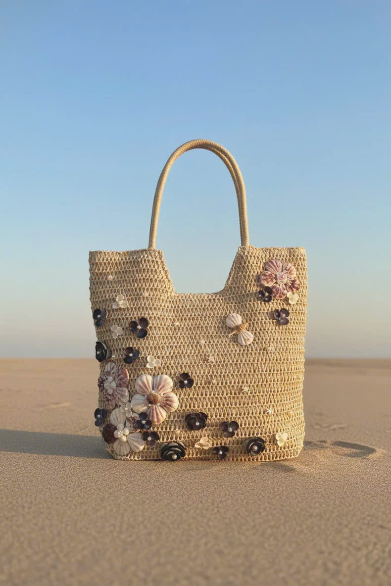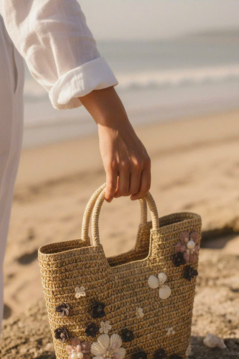 ✨Giỏ Cói Giấy Mềm Dáng Tote Gắn Vỏ Sò, Giỏ Cói Tote Hải Đường ACC142