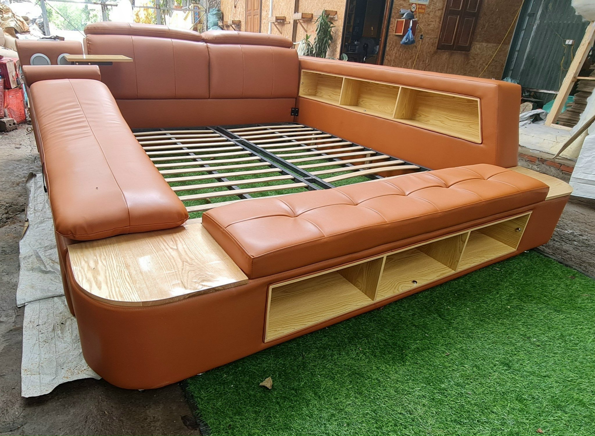 - Giường ngủ cao cấp có thành massage, thành hộc sách và hộc tiện ích, lọt lòng nệm 1m6 x 2m hoặc 1m8 x 2m. phủ bì 2m25 x 2m65