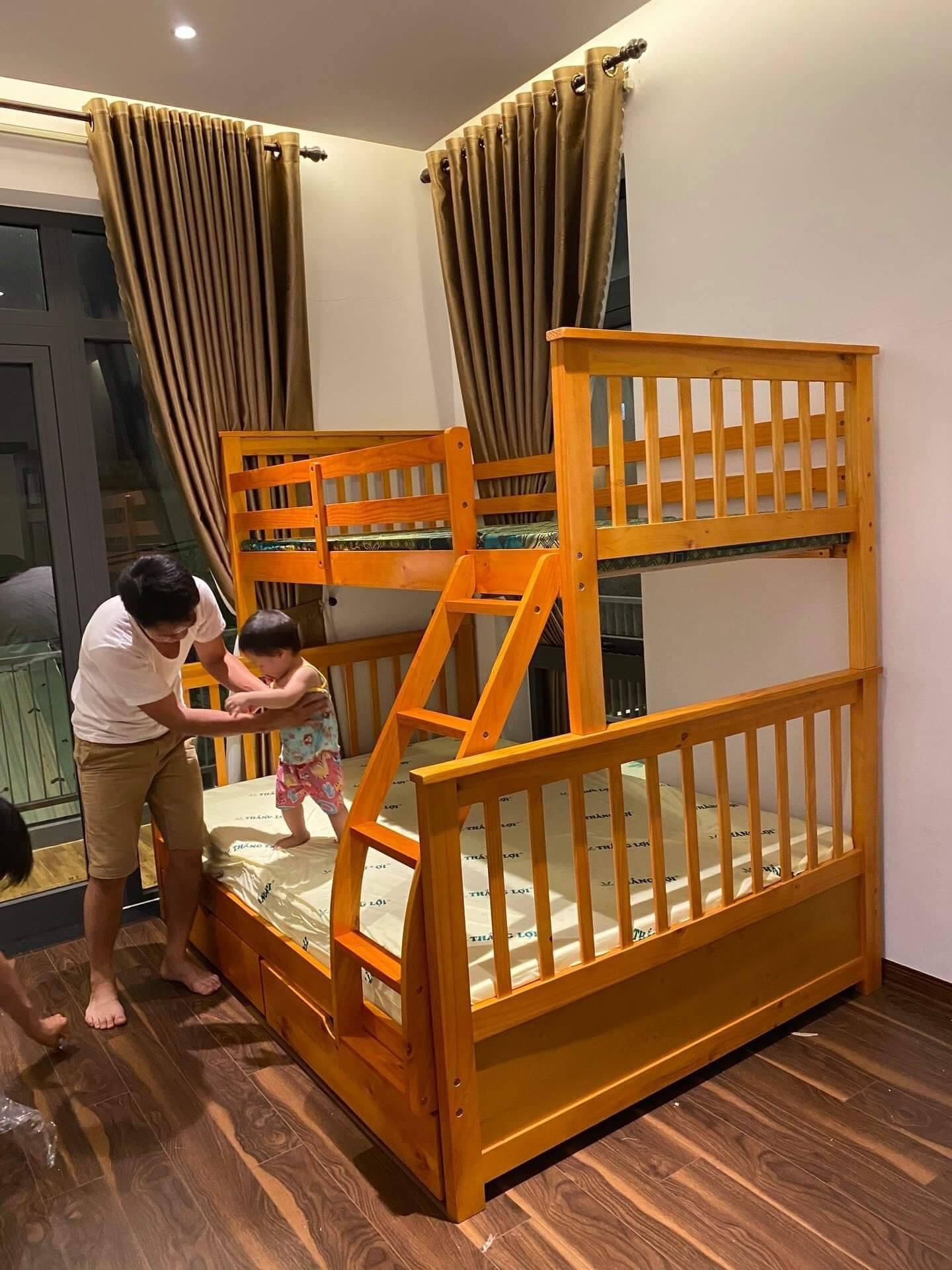 Giường gỗ 2 tầng 1m6 là một trong những chiếc giường tầng hiện đại đạt tiêu chuẩn quốc tế để xuất khẩu. Với mẫu mã sang trọng, độ bền cao cùng với sự tinh tế giường tầng gỗ thông 1m6 giúp bạn tiết kiệm được tối đa không gian trong gia đình. Với thiết kế chuyên biệt khi người lớn ngồi vào giường tầng 1 sẽ không chạm đầu vào tầng trên. Đây là đặc điểm khác biệt so với các dòng sản phẩm giường tầng khác.