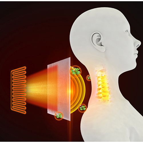 Máy tích hợp hồng ngoại trong 2 động cơ xoay. Các tia hồng ngoại chiếu xuyên vào các cơ và huyệt đạo vùng cổ, giúp cải thiện tuần hoàn máu lên não, làm giảm cảm giác nhức đầu, mang lại cho bạn giấc ngủ ngon hơn. Tia hồng ngoại còn thúc đẩy quá trình trao đổi chất, giúp xương khớp cổ khỏa mạnh hơn, giảm cảm giác đau mỏi nhanh chóng.
