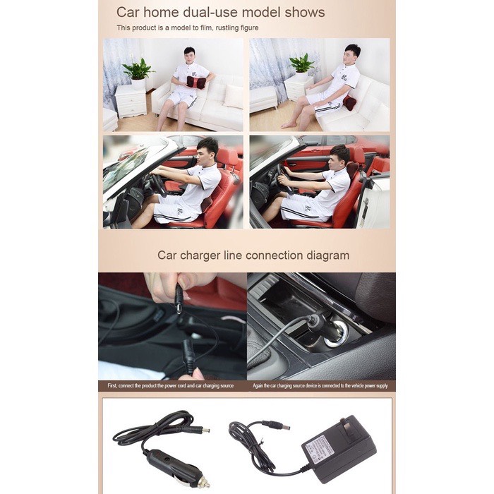 HƯỚNG DẪN SỬ DỤNG: - Gối có pin: sạc đầy rồi dùng. - Dung lượng pin : 600mA - Thời gian sử dụng 1 lần: Kéo dài 15 phút. - Thời gian sạc: Chế