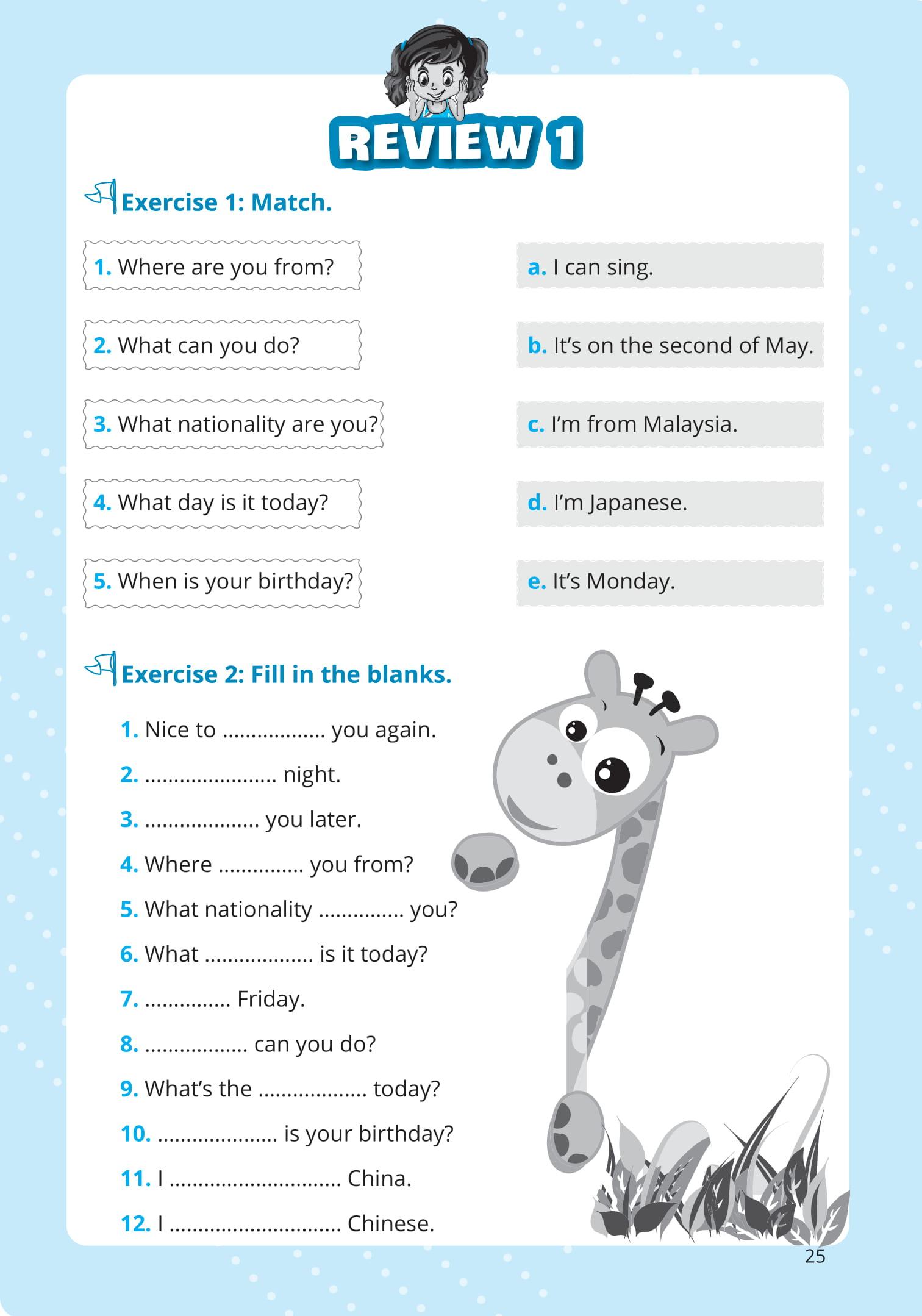 - “Học đi đôi với hành” – Bài tập thực hành đa dạng Để giúp các con hiểu sâu – nhớ lâu kiến thức và áp dụng được vào thực tế, các dạng bài tập thực hành rất phong phú: Bài tập nối (Match), điền từ vào chỗ trống, sửa lỗi sai, hoàn thành câu, dịch nghĩa…