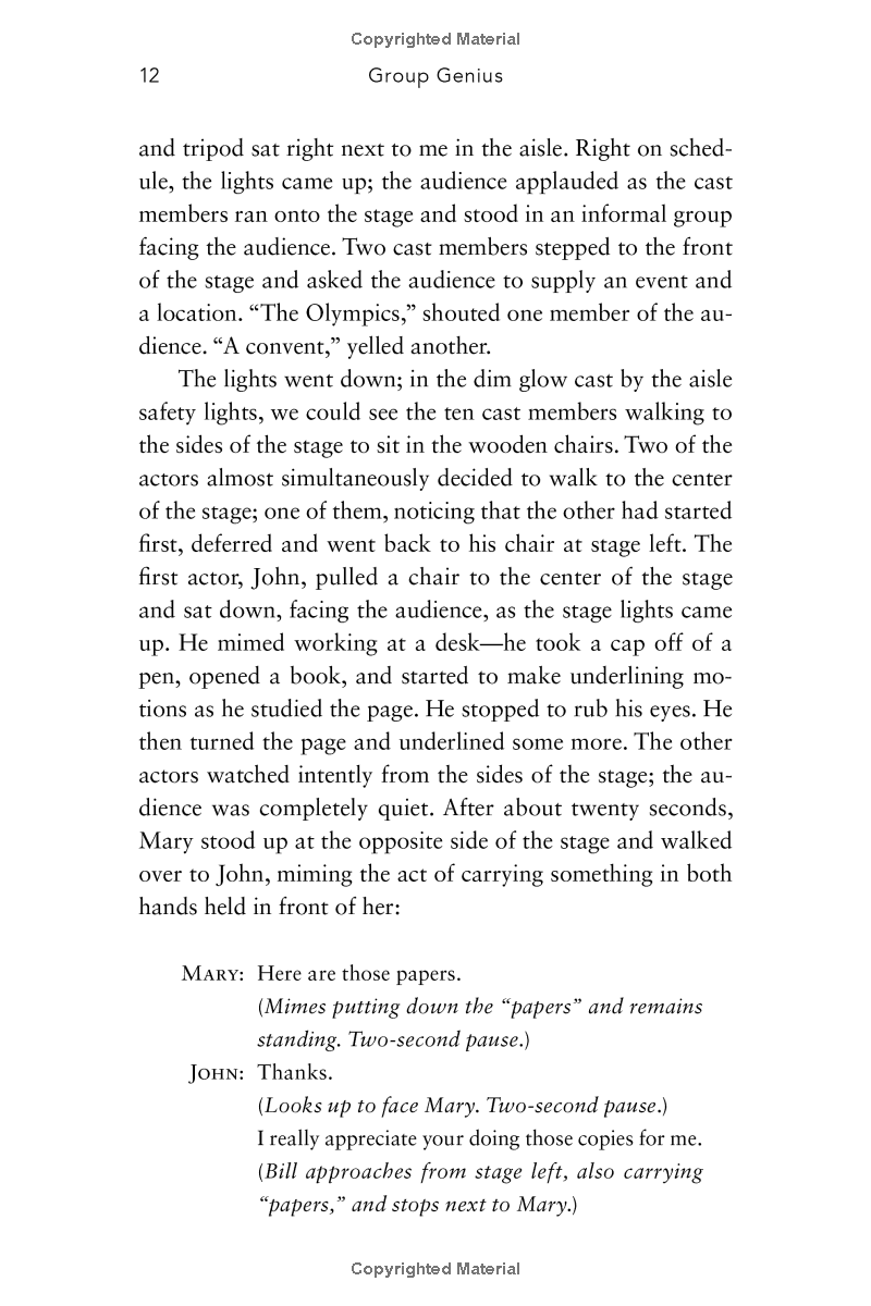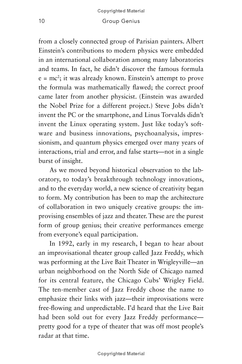 Creativity has long been thought to be an individual gift, best pursued alone; schools, organizations, and whole industries are built on this idea. But what if the most common beliefs about how creativity works are wrong? Group Genius tears down some of the most popular myths about creativity, revealing that creativity is always collaborative -- even when you're alone. Sharing the results of his own acclaimed research on jazz groups, theater ensembles, and conversation analysis, Keith Sawyer shows us how to be more creative in collaborative group settings, how to change organizational dynamics for the better, and how to tap into our own reserves of creativity.