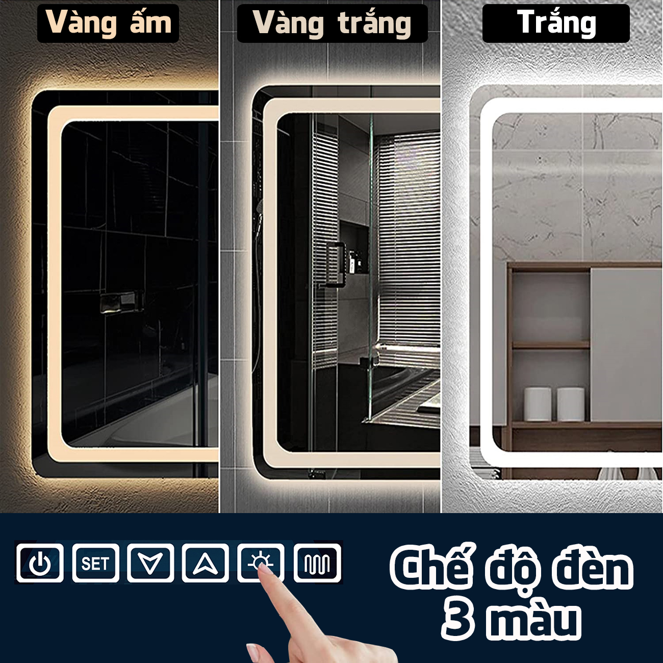 - Có 3 màu đèn thay đổi tùy ý: vàng ấm, vàng trắng, trắng