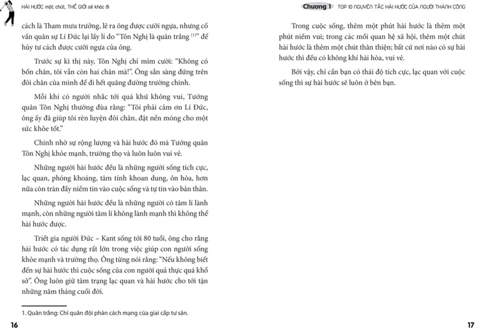 Hài hước một chút, thế giới sẽ khác đi – cuốn sách với nội dung phong phú mà sâu sắc này sẽ giúp các bạn có được cái nhìn rõ nét hơn về tầm quan trọng của tính hài hước dưới các góc độ, phương diện đánh giá khác nhau, cũng như có them những kĩ năng vận dụng sự hài hước vào trong cuộc sống. Hi vọng sau khi đọc xong cuốn sách này, bạn có thể biến mình thành một người biết nói chuyện, khéo léo vận dụng những ngôn từ hài hước, “gãi đúng chỗ ngứa” của đối phương để mở ra con đường dẫn tới thành công, được mọi người yêu mến.