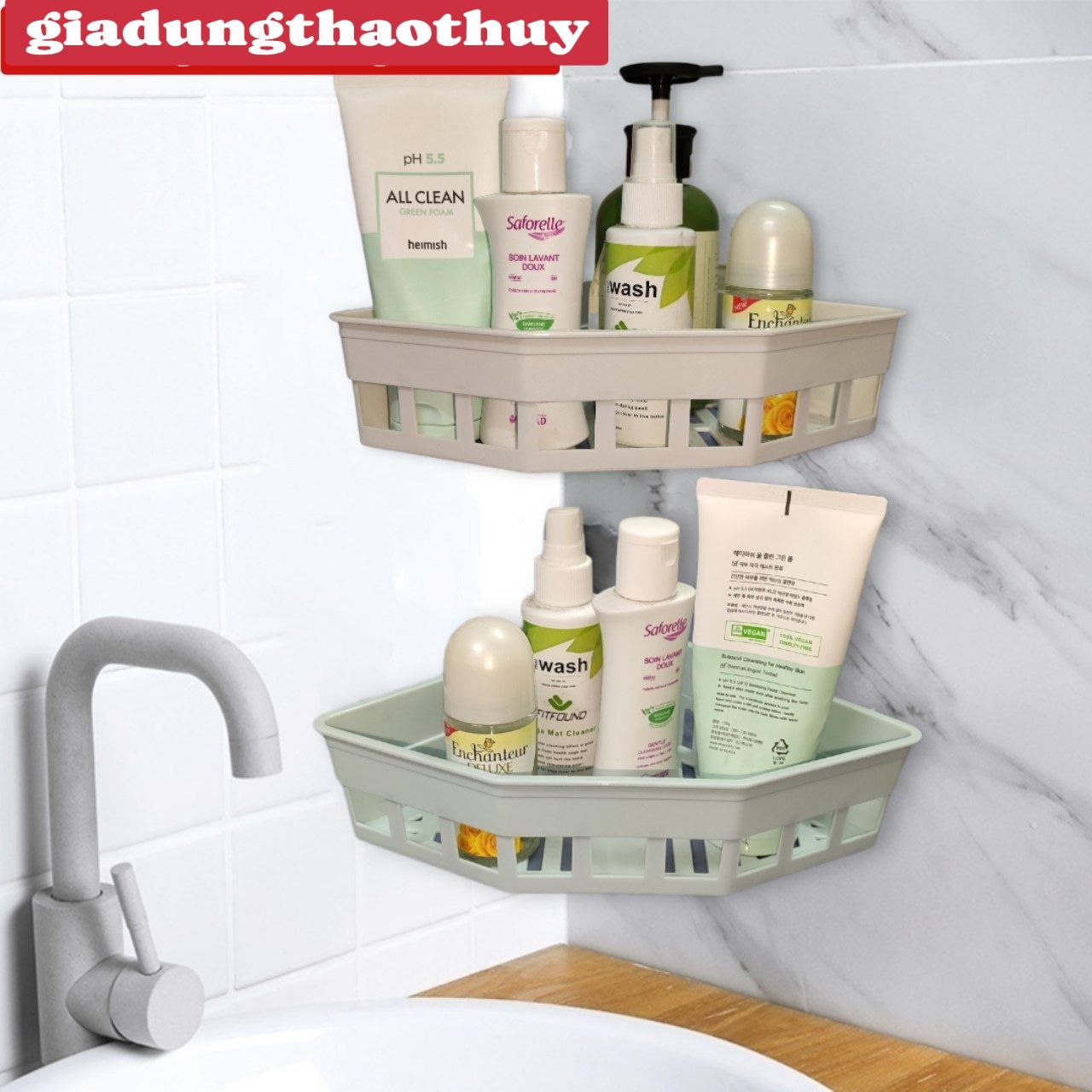 Kệ góc nhà tắm tiện lợi không cần khoan tường #thuanvvmall