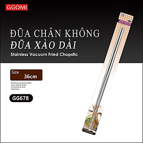 Đũa dài inox 36cm xào nấu thực phẩm GGOMi Hàn Quốc GG678 được nhà sản xuất hút chân không, thiết kế rỗng siêu nhẹ với vật liệu bằng thép không gỉ an toàn đối với sức khỏe còn người. Đầu đũa thiết kế bề mặt khứa giúp việc gắp thức ăn không bị trơn trượt khi sử dụng