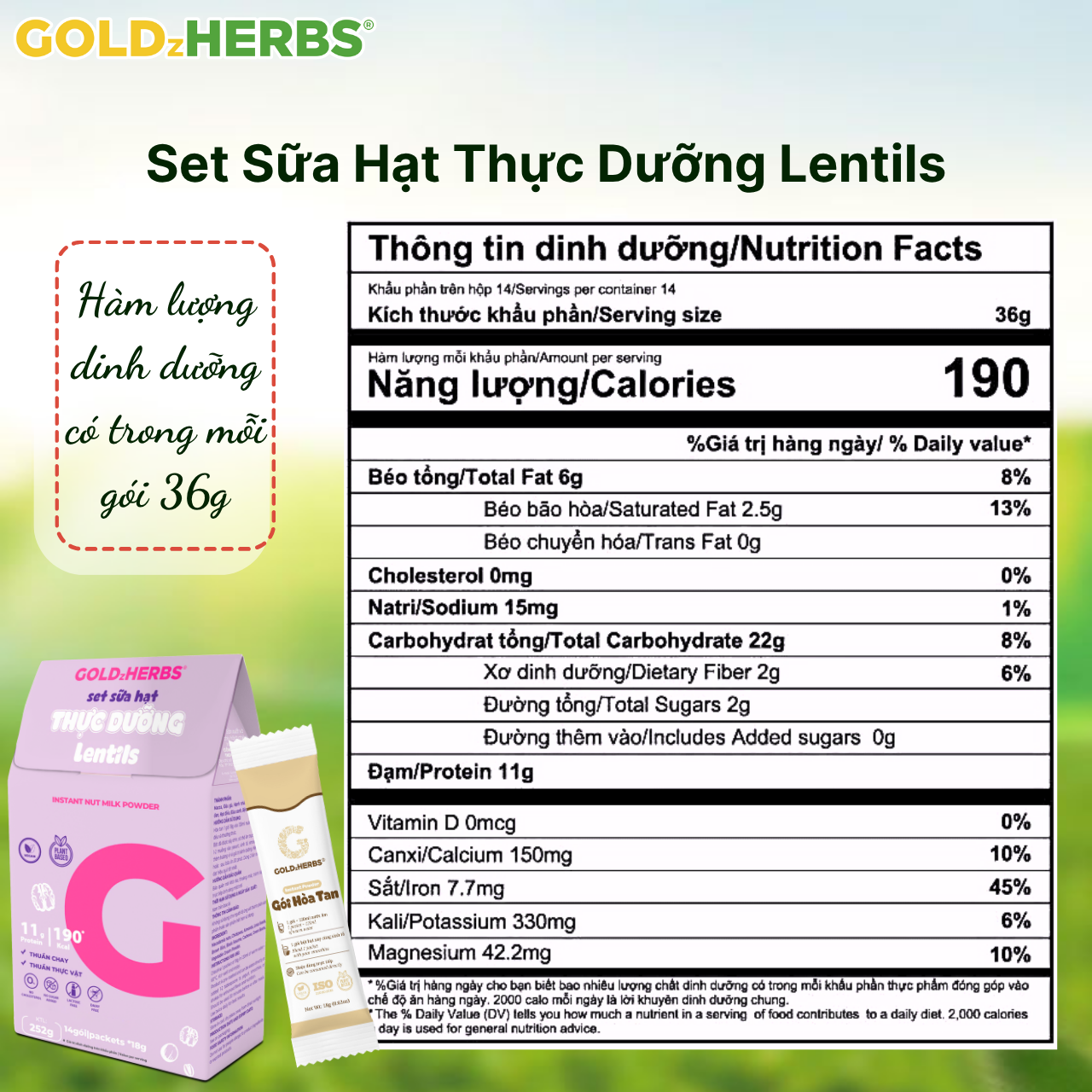 ✨[Hàng chính hãng] Set sữa hạt thực dưỡng GoldzHerbs Lentils - 15 gói/ 252g/ 500g