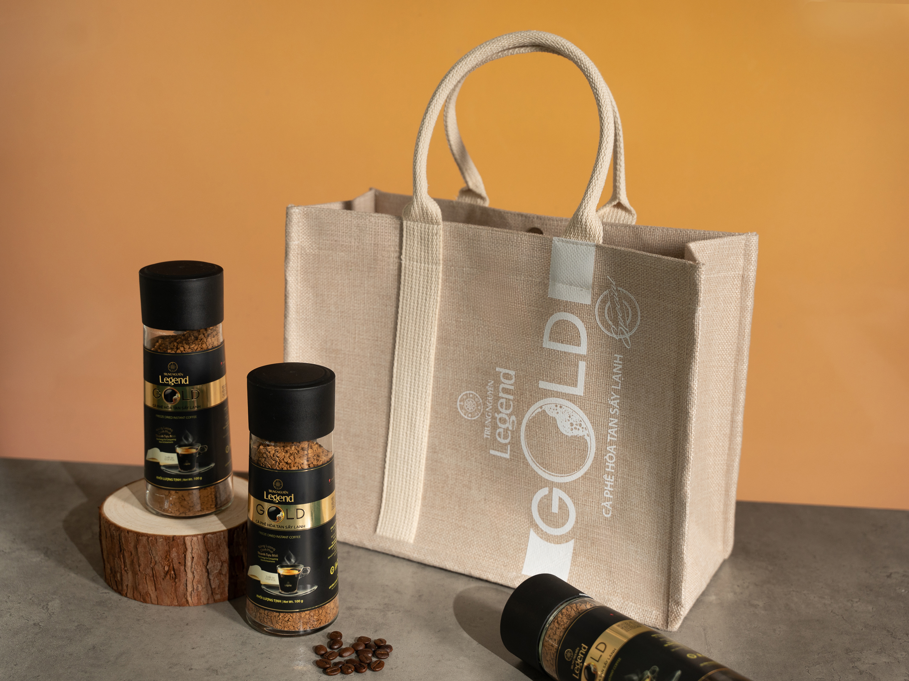 Túi vải đay Legend Gold Kích thước: 38x30x13 cm. Chất liệu: Vải đay. Thương hiệu: Trung Nguyên Legend.