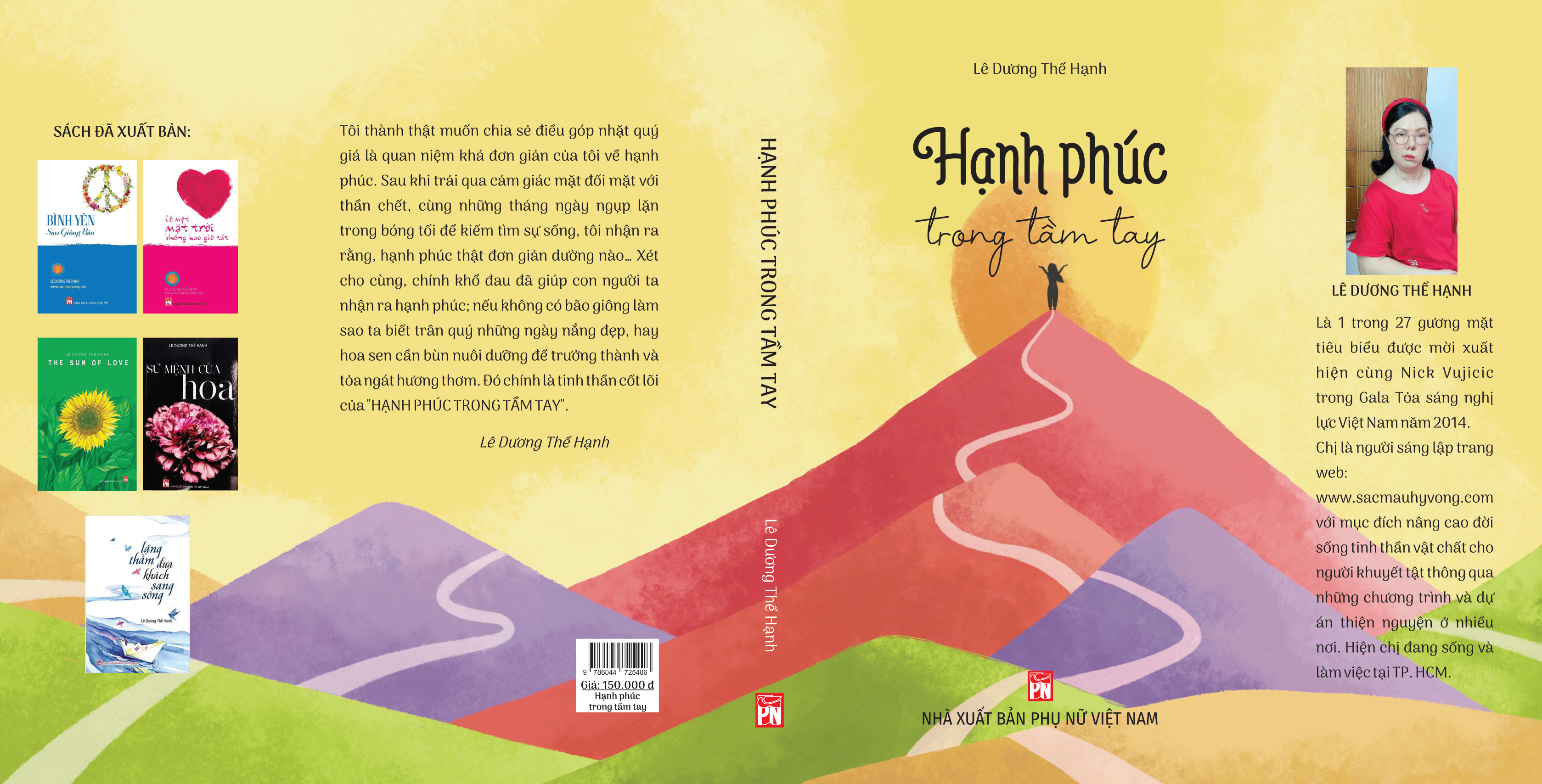 Mua tại Tiktok- THÔNG TIN CHUNG VỀ SÁCH "HẠNH PHÚC TRONG TẦM TAY" Nhà xuất bản Phụ nữ Việt Nam vừa phát hành tác phẩm "Hạnh phúc trong tầm tay" của tác giả Lê Dương Thể Hạnh vào tháng 10/2023 trên toàn quốc, nhân dịp Quốc tế Phụ nữ 20/10 - tháng tôn vinh nữ giới, đặc biệt những tác giả nữ. Có thể nói, "Hạnh phúc trong tầm tay" của Lê Dương Thể Hạnh ra mắt bạn đọc rất đúng thời điểm, vì đây là dịp cô có thể chia sẻ nhiều điều về hành trình tìm đến mặt trời của mình… Hạnh phúc trong tầm tay của tác giả Lê Dương Thể Hạnh thuộc dòng sách bổ trợ kỹ năng sống, là "rút ruột" chia sẻ từ tác giả về những đức tính quý báu mà con người cần có trong đời để cuộc sống trở nên chất lượng, trọn vẹn hơn. Là một tác giả khuyết tật, viết sách bằng phần mềm hỗ trợ giọng nói và nhờ sự giúp đỡ của cộng sự, Lê Dương Thể Hạnh cho thấy một nghị lực phi thường trong việc gieo những con chữ thiện lương, được trau chuốt cẩn thận để giúp vun bồi tâm hồn những bạn đọc "thuận duyên" đọc sách. Đồng hành cùng bóng tối hơn 15 năm, hơn ai hết, tác giả thấu hiểu việc "vượt tối" để tìm đến ánh sáng lương thiện trong "cõi người ta" này vô cùng gian nan. Và với những người thuộc nhóm "còn lại" như chính bản thân tác giả - khuyết tật đủ thứ, khả năng di chuyển và hoạt động hạn chế - hành trình "vượt tối" còn gian nan hơn gấp nhiều lần. Tuy vậy, chị không bỏ cuộc. Ở độ tuổi mà mọi người đã yên bề gia thất, con cái lớn khôn, tác giả Lê Dương Thể Hạnh, như bộc bạch của chị trong các trang sách, vẫn vui vẻ bên gia đình, cha mẹ, vẫn tận hưởng cuộc sống theo cách của riêng mình, và để biết rằng, ngày nào còn thở trên cuộc đời này thôi đã là may mắn lắm rồi. Nhưng những điều mà chị muốn độc giả hướng đến không dừng lại ở đó. Chị tâm sự: "Đến với Hạnh phúc trong tầm tay, có lẽ bạn sẽ tạm quên đi những nỗi đau ở quá khứ, và bạn cũng xa rời gánh nặng áo cơm để trở về với những giá trị - rất bình dị và rất chân thật từ trong sâu thẳm tâm hồn mình". Các chủ đề mà tác giả Lê Dương Thể Hạnh xoáy sâu vào gồm có bình yên, bao dung, khiêm tốn, yêu thương, lễ - nghĩa - trí - tín, tương trợ, tự do và hạnh phúc. Tuy xa mà gần, tuy gần mà xa, chị dẫn dắt độc giả qua từng chủ đề một cách dí dỏm, lối dẫn chuyện có duyên, văn phong khúc chiết để thấy được rằng, hạnh phúc không ở đâu xa mà nằm trong lòng bàn tay ta! Chị bộc bạch: "… Khi may mắn được sinh ra với cơ thể và trí não của một con người, có lẽ ta nên kích hoạt sóng não dành cho con người, vượt qua những nỗi sợ, mạnh dạn tiến về phía trước để đón nhận một tương lai tốt đẹp và thanh thản lưu lại những điều kỳ diệu cho cuộc đời. Và đây chính là tinh thần cốt lõi của "HẠNH PHÚC TRONG TẦM TAY"".