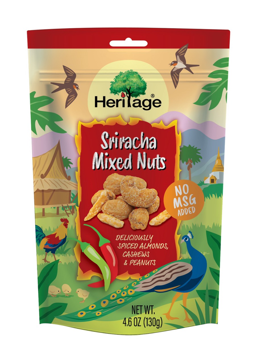 - Hạt hỗn hợp khô tẩm tương ớt Sriracha là sản phẩm của tập đoàn Heritage, doanh nghiệp chế biến các loại quả hạt khô cao cấp hiện đã có mặt trên 60 quốc gia