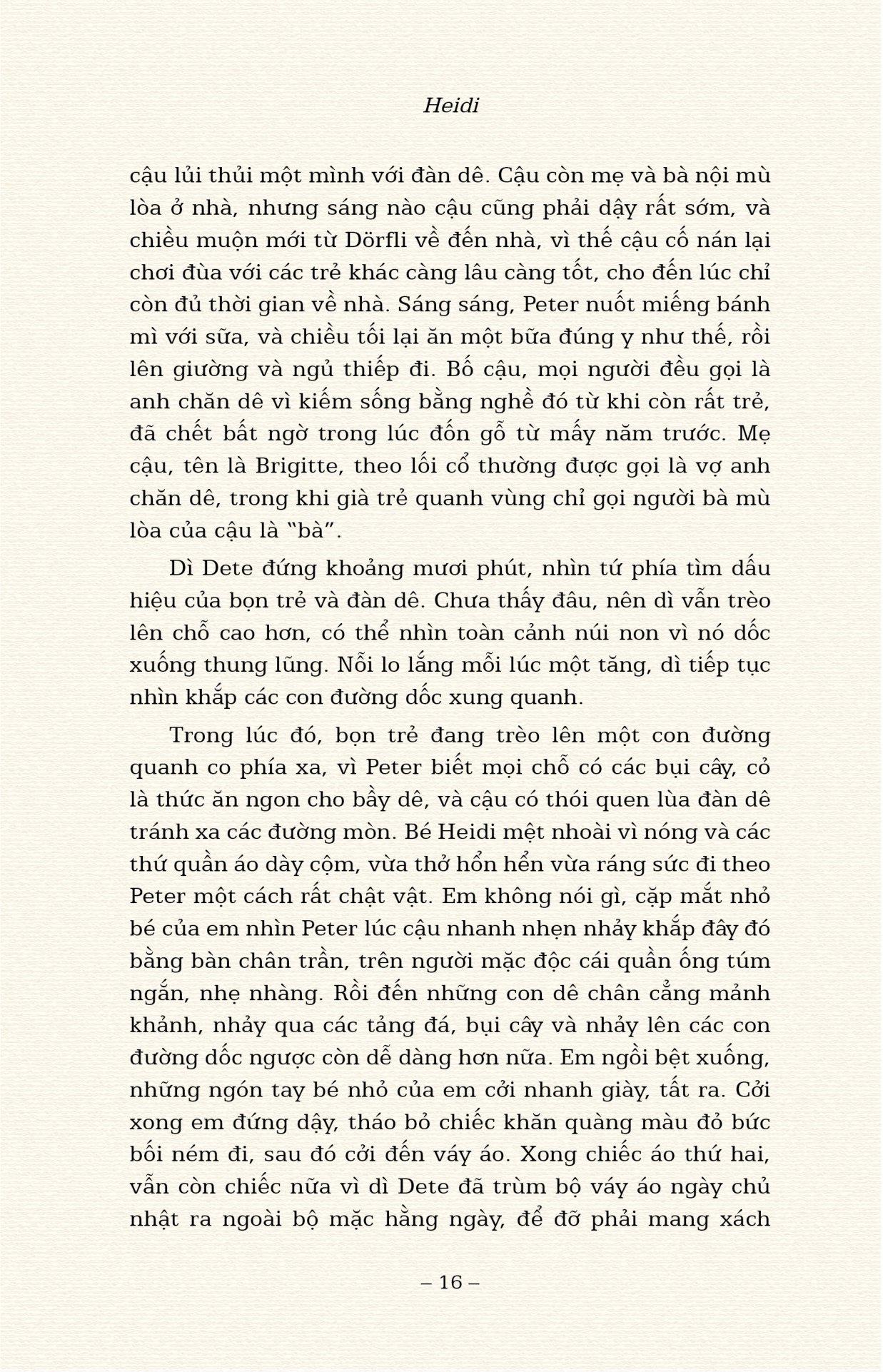 Cuốn sách kinh điển của Johanna Spyri đã được Đông A xuất bản với bản dịch được yêu thích của dịch giả Thanh Vân, minh họa của Elena Selivanova. Sách in màu, bìa cứng, có bìa áo.
