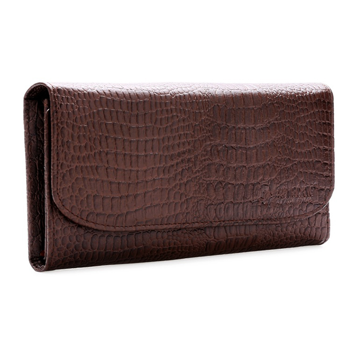 Ví/Bóp nữ vân cá sấu Huy Hoàng bấm nút màu nâu 3110