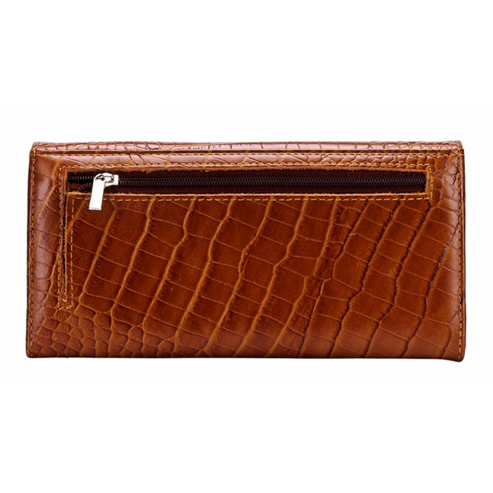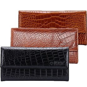 Ví/Bóp nữ da bò Huy Hoàng vân cá sấu lớn 3 gấp màu nâu đỏ 3169
