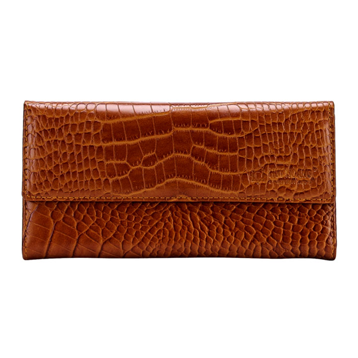 Ví nữ/Bóp nữ da bò vân cá sấu Huy Hoàng bấm nút màu da, đen, nâu 3108-09-10