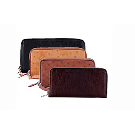 ✨HJ3440-41-42-43 - Bóp da đà điểu 2 khóa đen, nâu đỏ, vàng bò, nâu đất