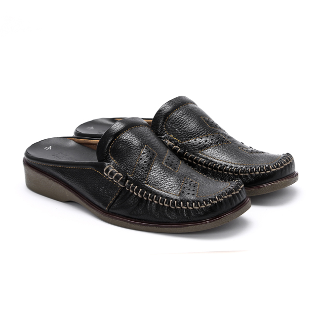 Giày sabo nam Huy Hoàng da bò màu đen 7796