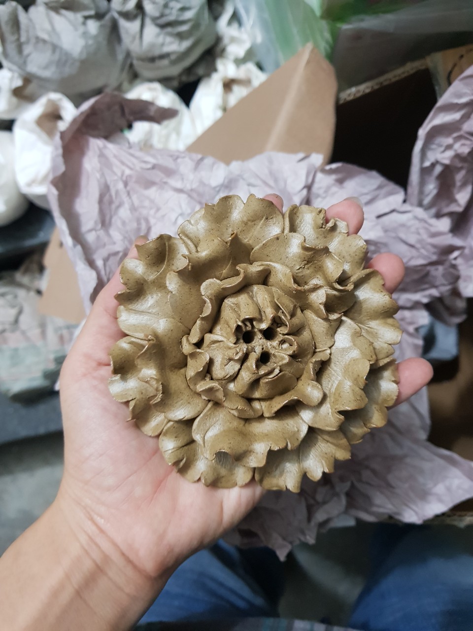 ✨Hoa gốm thủ công cắm nhang trầm hoặc để trầm nụ DDT27 hoa nâu