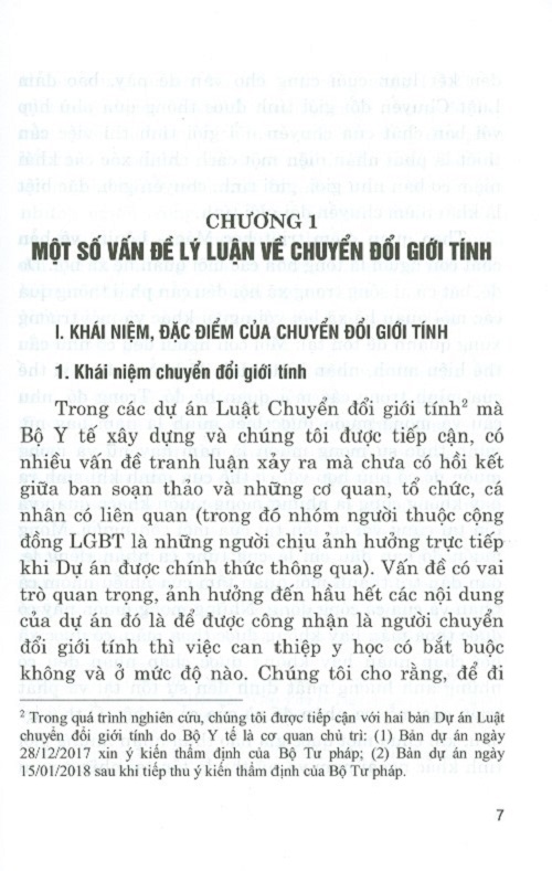 Mua tại TiktokCuốn sách nghiên cứu, đánh giá các quan điểm khác nhau về khái niệm “chuyển đổi giới tính”, đưa ra hướng hoàn thiện khái niệm này, đồng thời chỉ ra một số đặc điểm, xác định bản chất của chuyển đổi giới tính, khẳng định chuyển đổi giới tính là nhu cầu khách quan của con người và là một trong các quyền nhân thân của cá nhân được ghi nhận trong Bộ luật Dân sự năm 2015