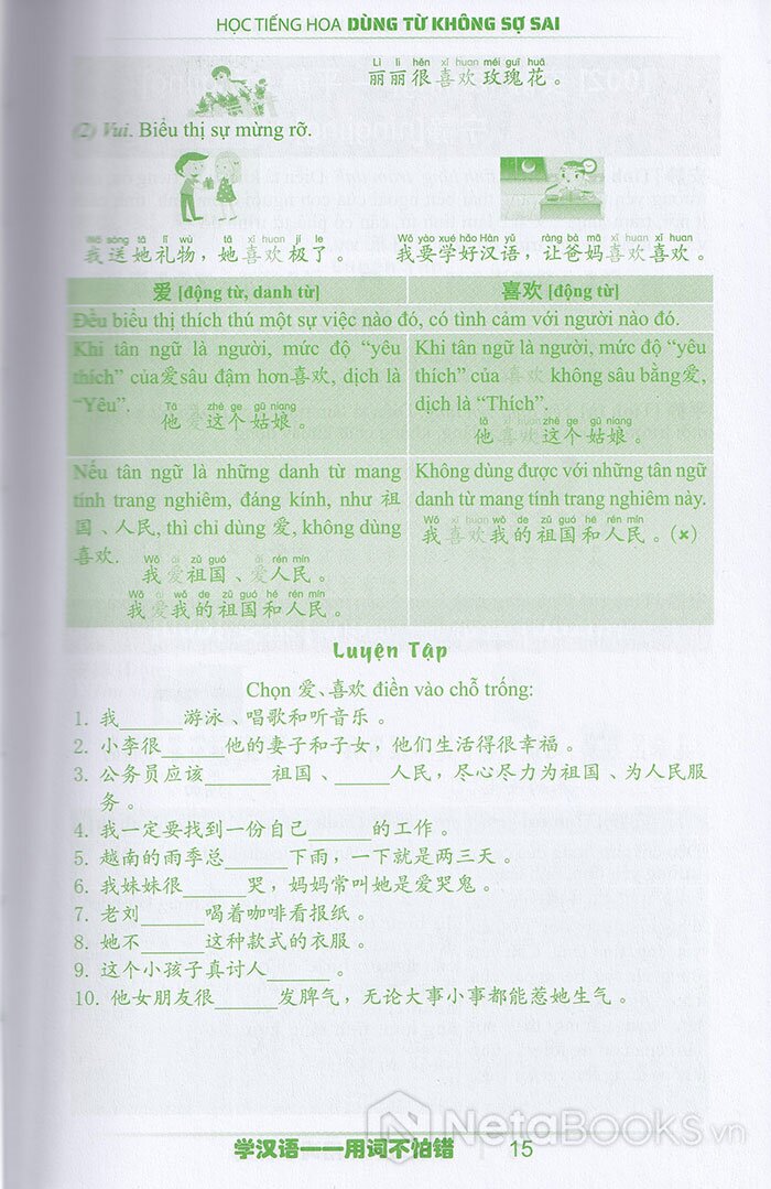 Hiểu được những khó khăn đó, tiếp nối thành công của quyển sách “So sánh 125 nhóm từ đồng nghĩa, gần nghĩa thường gặp trong tiếng Hoa”, nhóm chúng tôi tiếp tục biên soạn quyển “HỌC TIẾNG HOA: DÙNG TỪ KHÔNG SỢ SAI” này, với mong muốn giải quyết những vướng mắc, khó khăn cho người học trong quá trình học, đồng thời cung cấp và làm phong phú thêm tủ sách tham khảo cho học sinh và cho cả giáo viên trong quá trình soạn giáo án, giảng dạy, nâng cao kiến thức.