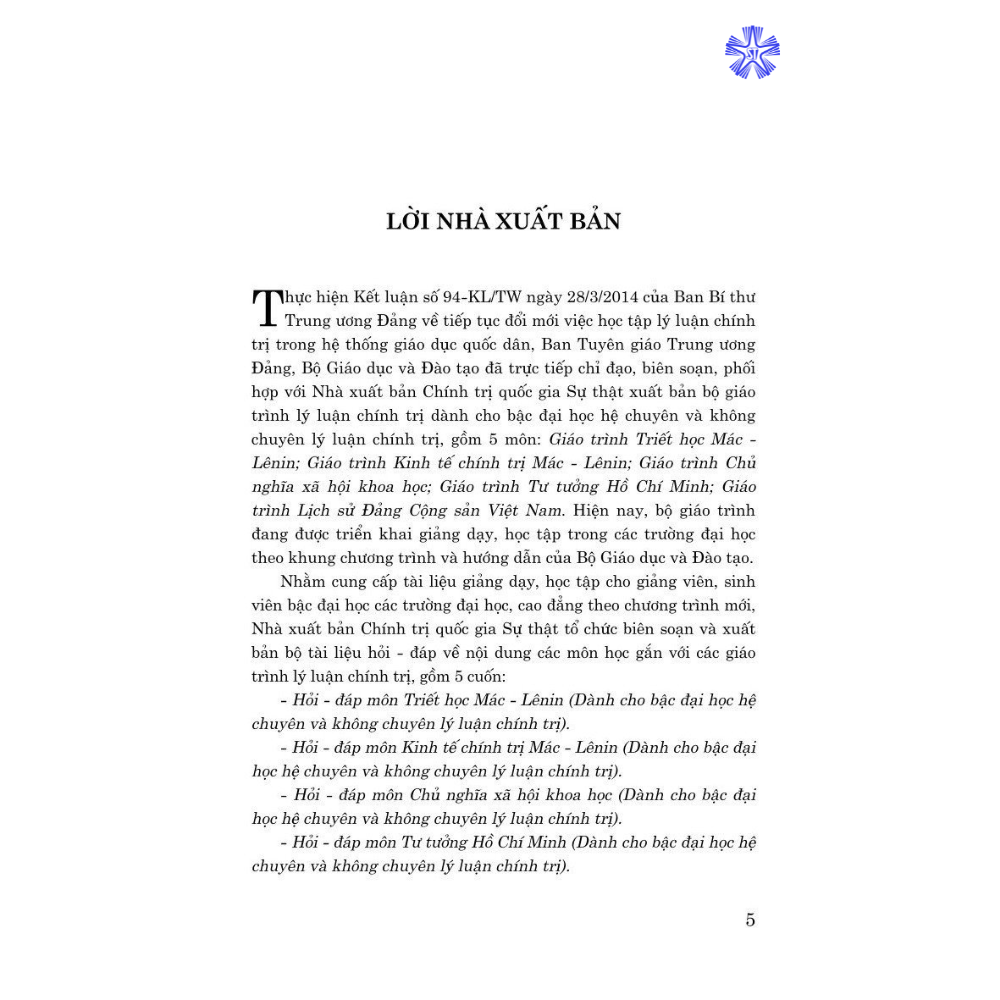 Các câu hỏi bám sát nội dung của Giáo trình Tư tưởng Hồ Chí Minh, làm rõ những vấn đề cơ bản về cơ sở, quá trình hình thành và phát triển tư tưởng Hồ Chí Minh; Những nội dung cơ bản trong tư tưởng Hồ Chí Minh về độc lập dân tộc và chủ nghĩa xã hội; về Đảng Cộng sản Việt Nam và Nhà nước của nhân dân, do nhân dân, vì nhân dân; Về đoàn kết dân tộc và đoàn kết quốc tế; Về văn hóa, đạo đức, con người, Cuốn sách giúp sinh viên nắm vững kiến thức và vận dụng vào việc học tập và làm theo tư tưởng, đạo đức, phong cách Hồ Chí Minh trong quá trình học tập, rèn luyện, phấn đấu.