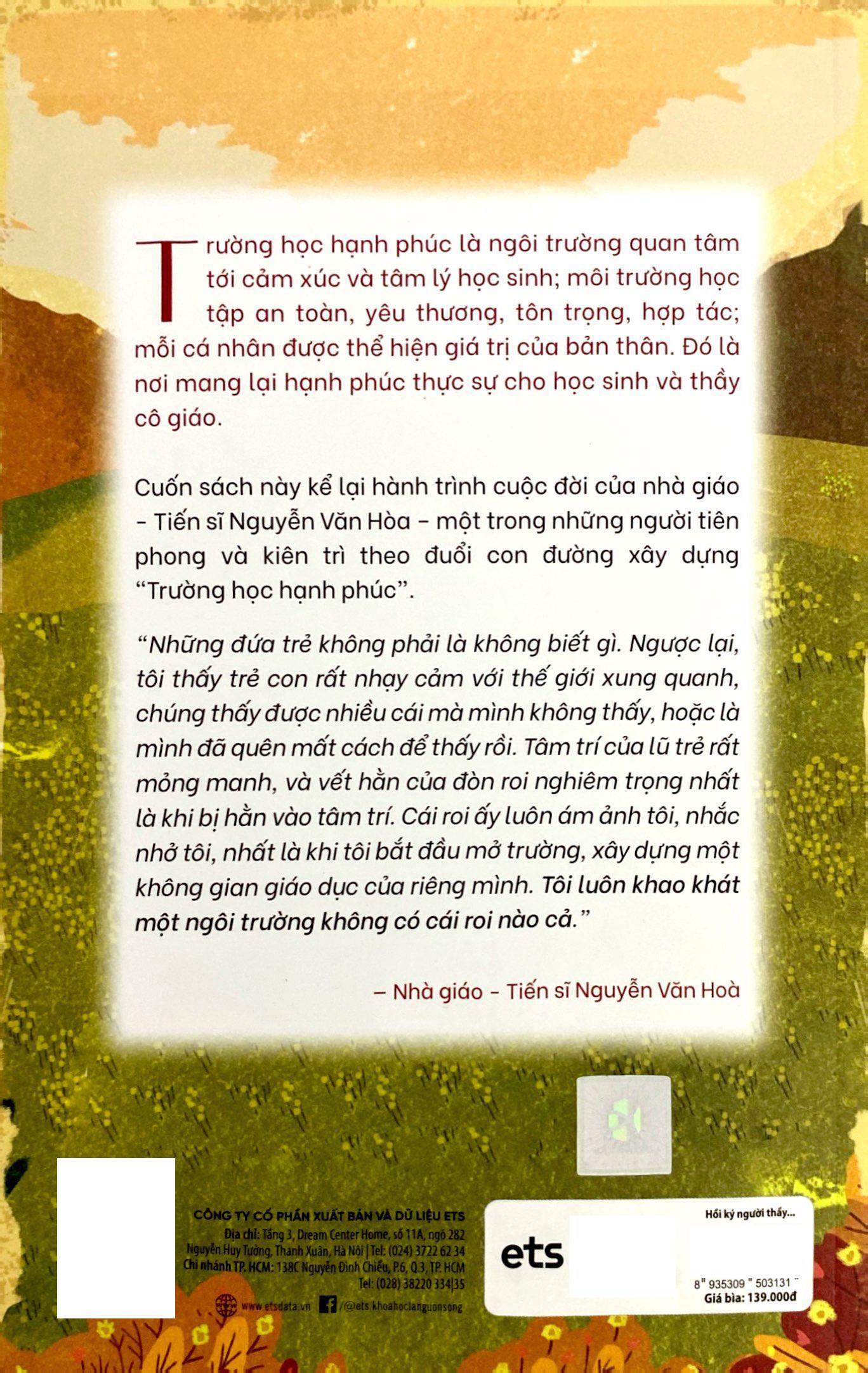 Trường học hạnh phúc, suốt 30 năm trong nghề giáo, đó là nỗi trăn trở, là mục tiêu mà thầy Hòa hướng đến từ những ngày đầu xây trường. Lý do nào khiến một người thầy giáo đầu những năm 90 đã có ước mơ lớn lao đến vậy? Ngày tấm bé, thầy thấm thía những điều mà một cậu học trò được khích lệ, sợ hãi, mong muốn. Lớn dần lên trong giai đoạn đất nước còn rối ren, những ước mơ của thầy phải dừng lại vì lựa chọn đi bộ đội, chọn cống hiến sức trẻ cho hòa bình của Tổ quốc. Nhưng thầy vẫn nung nấu ước mơ như ngọn lửa âm ỉ cháy, để rồi khi trở về từ chiến trường, khi đã ngoài 30, thầy ôn và thi đỗ đại học.