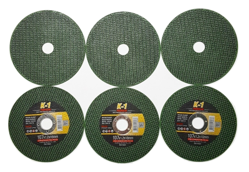 Tên thường gọi: Đá cắt K1 xanh 107 *** THÔNG TIN SẢN PHẨM - Kích thước: 107 x 1.2 x 16mm - Màu: xanh - Số lượng: 100 viên - Công dụng: cắt sắt, gia