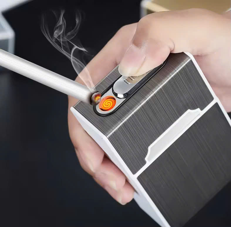 Sang trọng - Đẳng cấp - cùng hộp đựng thuoc lá kiêm Hộp-quẹt-lửaa điện tử cảm ứng mẫu mới nhât hiện nay cho độ sang trọng và chống nước khi đi mưa