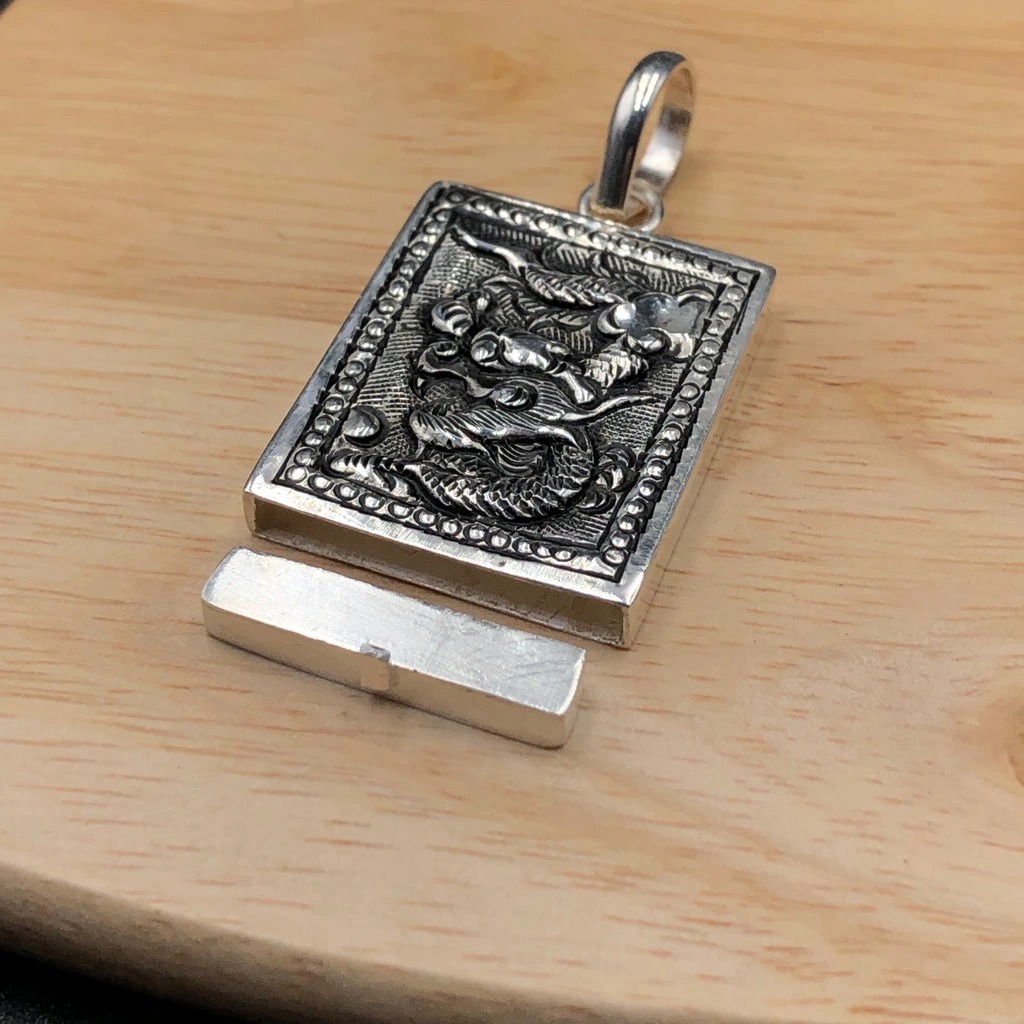 Hộp Đựng Bùa Mặt Dây Chuyền Nam Nữ Bạc Ta Hình Rồng BẠC HIỂU MINH MDN029X
