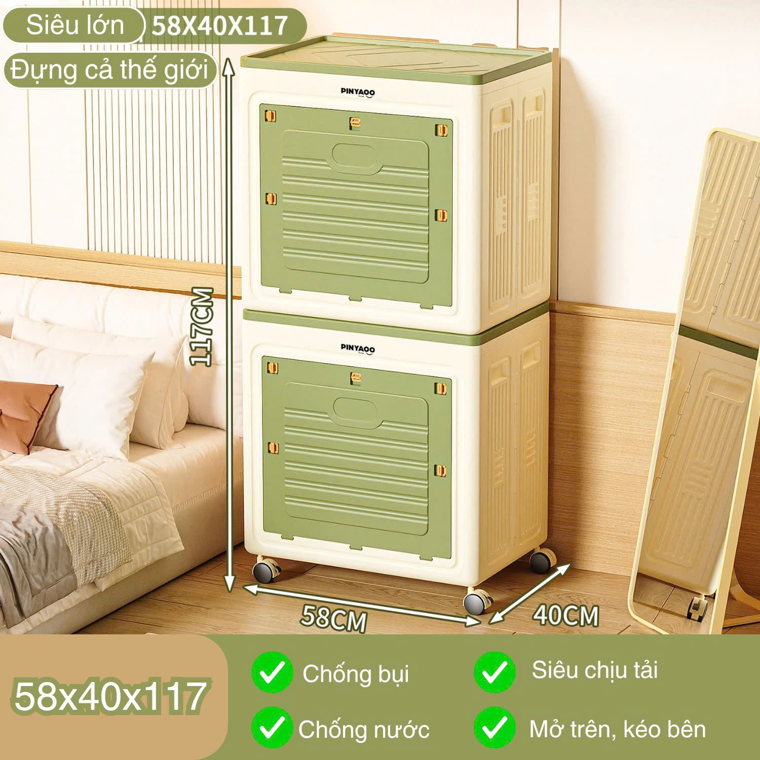 Hộp Đựng Đồ Đa Năng Gấp Gọn Có Bánh Xe Cao Cấp Nhập Khẩu Chính Hãng Vando, Thùng Đựng Quần Áo Có Nắp Đậy Cửa Mở Thông Minh 2 Phiển Bản: Màu sắc đặc biệt