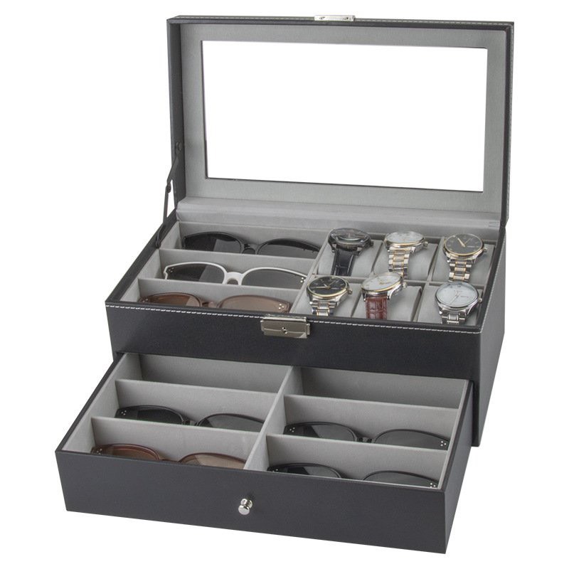 ✨Hộp Đựng Đồng Hồ Và Mắt Kính 2 Tầng SAIKE SAIKE S609 Vỏ Da Màu Đen