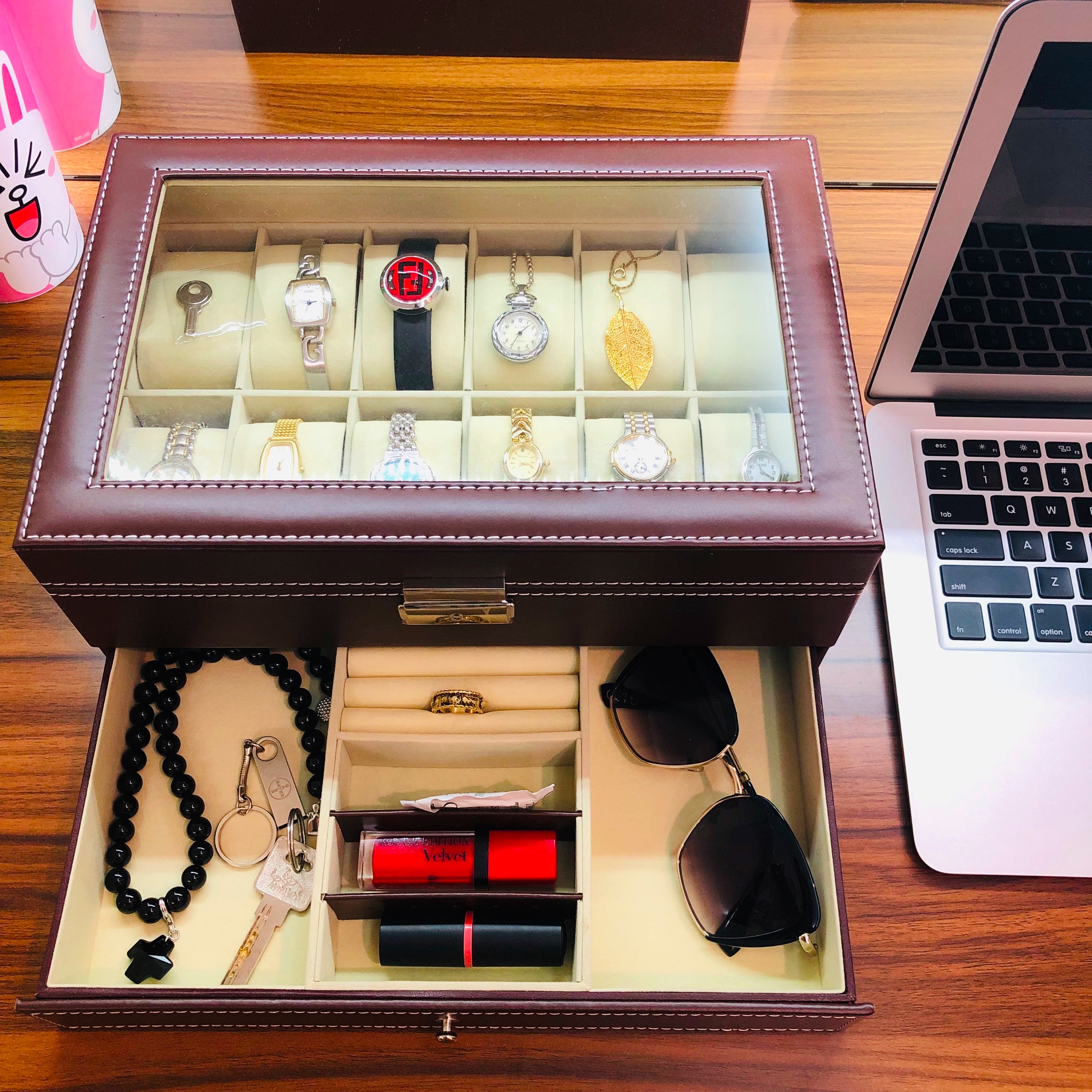Bạn có khoảng 6-8 chiếc đồng hồ và phụ kiện trang sức như nhẫn, vòng ùng với đó bạn thích hộp có mặt kính để nhìn thấy phụ kiện bên trong hộp và hộp có