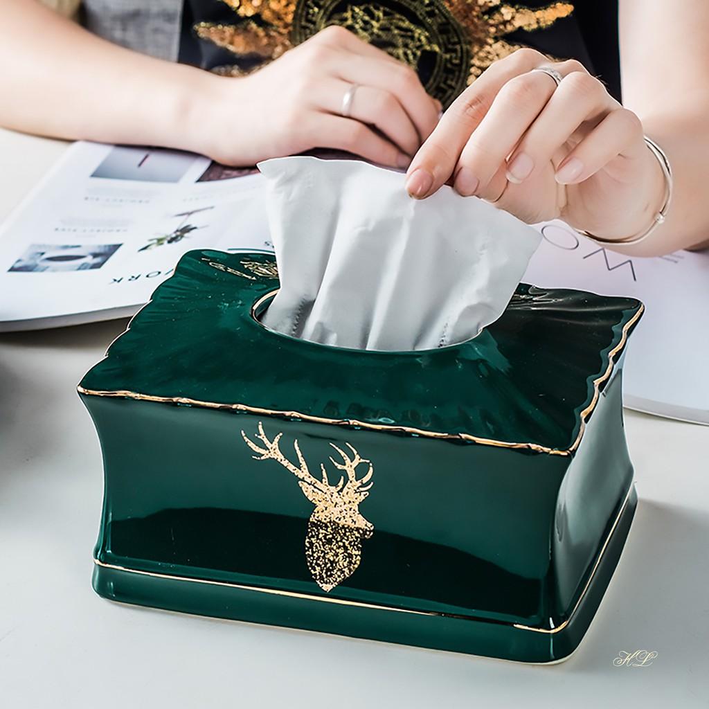 ✨Hộp Đựng Khăn Giấy Gốm Sứ Xanh Ngọc Lục Bảo Phong Cách Bắc Âu | HỘP ĐỰNG GIẤY CHẤT LIỆU SỨ KẺ VÀNG KIM