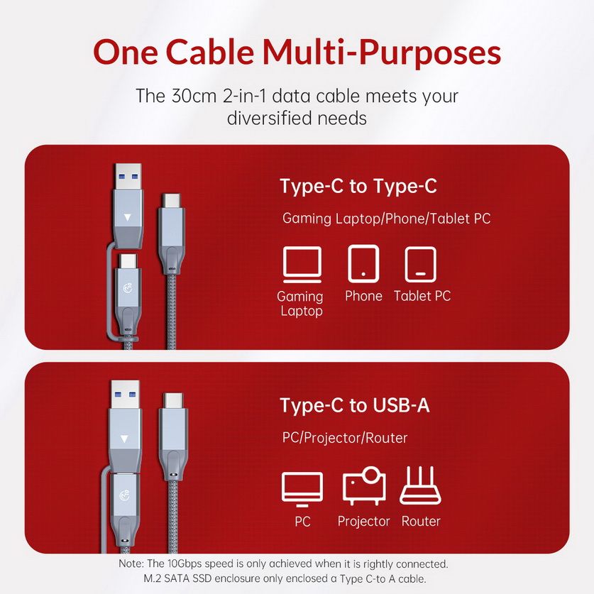 TÍNH NĂNG NỔI BẬT -Hộp ổ cứng 2.5" SSD/HDD SATA 3 USB3.1 Gen2 Type-C -Dùng cho cả SSD và HDD loại 2.5". Hỗ trợ ổ cứng 2.5" 4TB -USB3.1 Gen2 Type-C, tốc độ truyền dữ